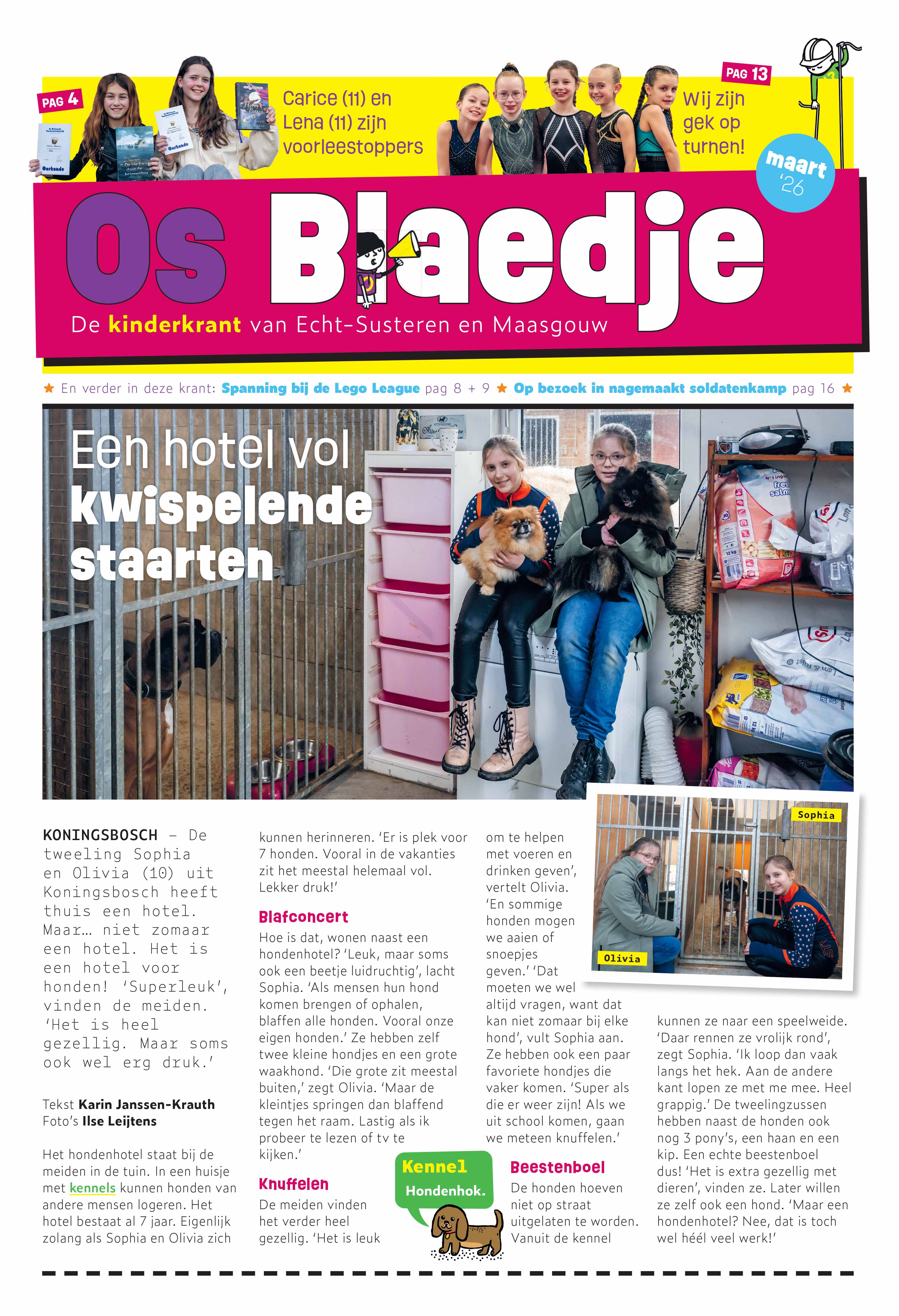 Os Blaedje verschijnt sinds september 2023 en is dé kinderkrant voor alle kinderen van 7 tot en met 12 jaar in de gemeenten Echt-Susteren en Maasgouw. Op 19 basisscholen en 2 scholen voor speciaal onderwijs delen we Os Blaedje uit in groep 5 tot en met 8. De kinderkrant is ook verkrijgbaar bij een aantal openbare gelegenheden (oplage 2.500).